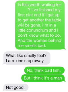 AT 7.25pm, I called for back-up. The response was definite. Finish your beer and get out. You shouldn’t have waited more than 15 mins. I did wait and I waited a bit more.